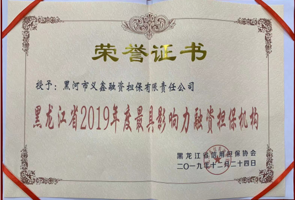 2019/12/30 義鑫擔保公司榮獲“黑龍江省2019年度最具影響